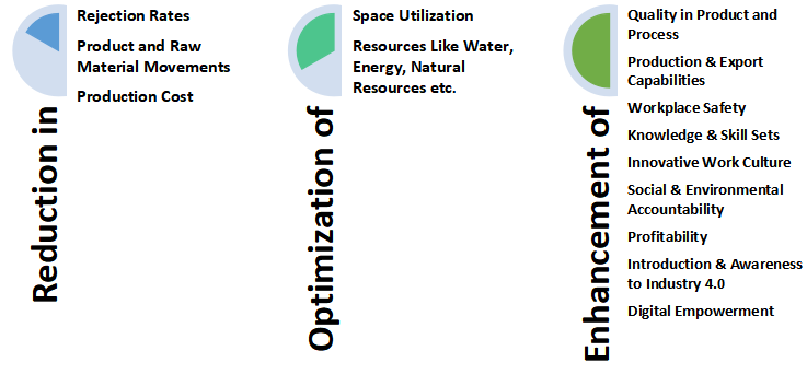 The objective of the scheme is to enhance the Domestic and Global Competitiveness of MSMEs through the application of various Lean Techniques that inter-alia includes:
